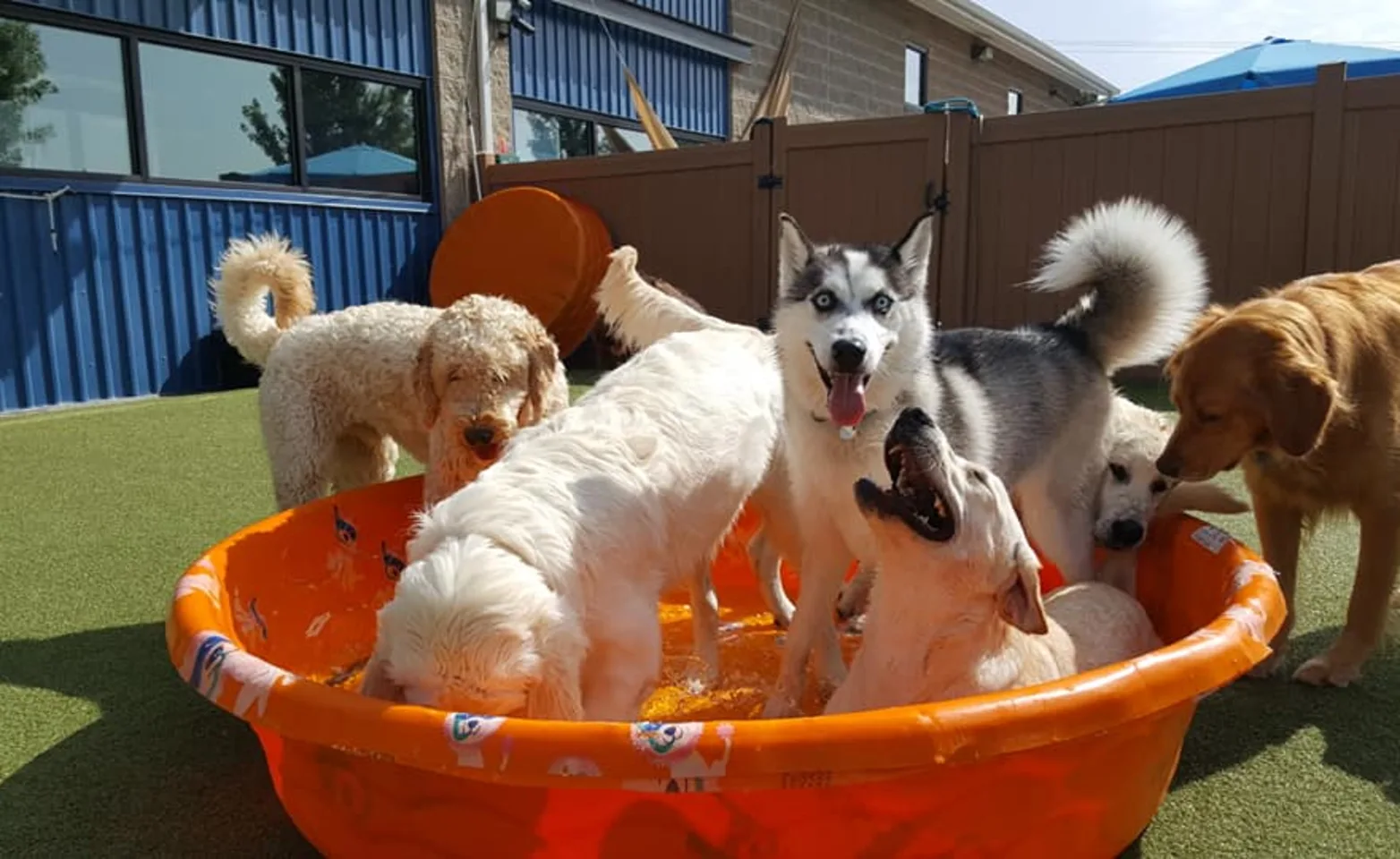 Dog daycare and boarder dogs are put in playgroups of 7 to 15 other dogs of similar size, age, and play style. Young puppies and rowdy adolescents have their own groups where they won’t pester the older dogs. Senior citizens also have their own group where they won’t be bothered by more active dogs.
